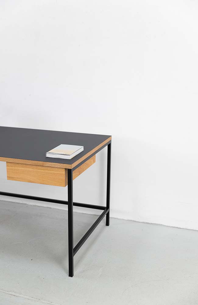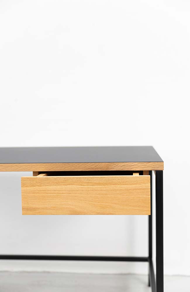 Unser Schreibtisch ST1 wird je nach Bedarf angefertigt. Ob mit oder ohne Schublade, kleinerer Höhe oder Übergröße.